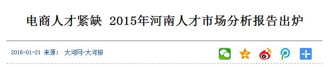 如今,随着电子商务在河南落地、生根、迅猛发展,需要更多人才。郑欧班列带动河南成为欧亚商品进口中国的重要集散中心,跨境电商大潮中,郑州挺立潮头,实现“买全球、卖全球”不再是梦,加上接连有电商物流项目在郑州航空港区集中开工等等,河南省人才交流中心副主任卢宇认为,随着河南电商行业愈发火热,对电子商务人才的需求热度也将持续。