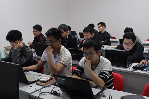 一眼望去全是男生,仔细找找,还是没有女生,问问老师怎么回事,原来这是今天开班的安卓班,清一色的男生哦。